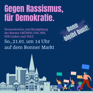Aufruf zur Teilnahme an der Kundgebung in Bonn gegen Rechtsextremismus und für den Schutz unserer Demokratie am 21. Januar um 14 Uhr