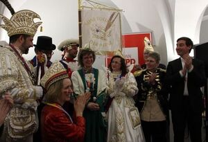 Im Rahmen des Tollitäten-Empfanges der SPD-Fraktion im Rat der Stadt Bonn am Freitag, den 15. Februar 2019, hat der Vorsitzende der Bonner SPD Gabriel Kunze in Anwesenheit von Prinz Thomas I. & Bonna Anne-Christin I. die `Laetitia´ 2019 an Petra Oster von der KG Fidele Möhnen 1935 e.V. verliehen. Die `Laetitia´ ist als Auszeichnung der Bonner SPD für soziales Engagement im Karneval und das Bönnsche Brauchtum nach `Laetitia´ benannt – der römischen Göttin des Frohsinns, die als Vorgängerin der `Bonna´ im ersten Bonner Rosenmontagszug 1828 auftrat.